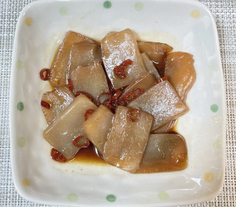・こんにゃく …… 1枚 ・鷹の爪 …… 1本分~好きなだけ・白いりごま …… 適量 ・ごま油 …… 適量・A:醤油、酒、みりん …… 各大さじ1・A:砂糖 …… 大さじ1/2~1(好みの甘さで)・A:ほんだし …… 小さじ1